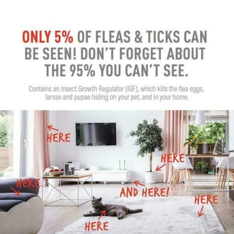 Effective flea prevention. Contains an insect growth regulator which kills flea eggs, larve and pupae hiding on your pet, and in your home.
